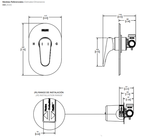 MONOMANDO REGADERA SIN DESVIADOR POTENZA